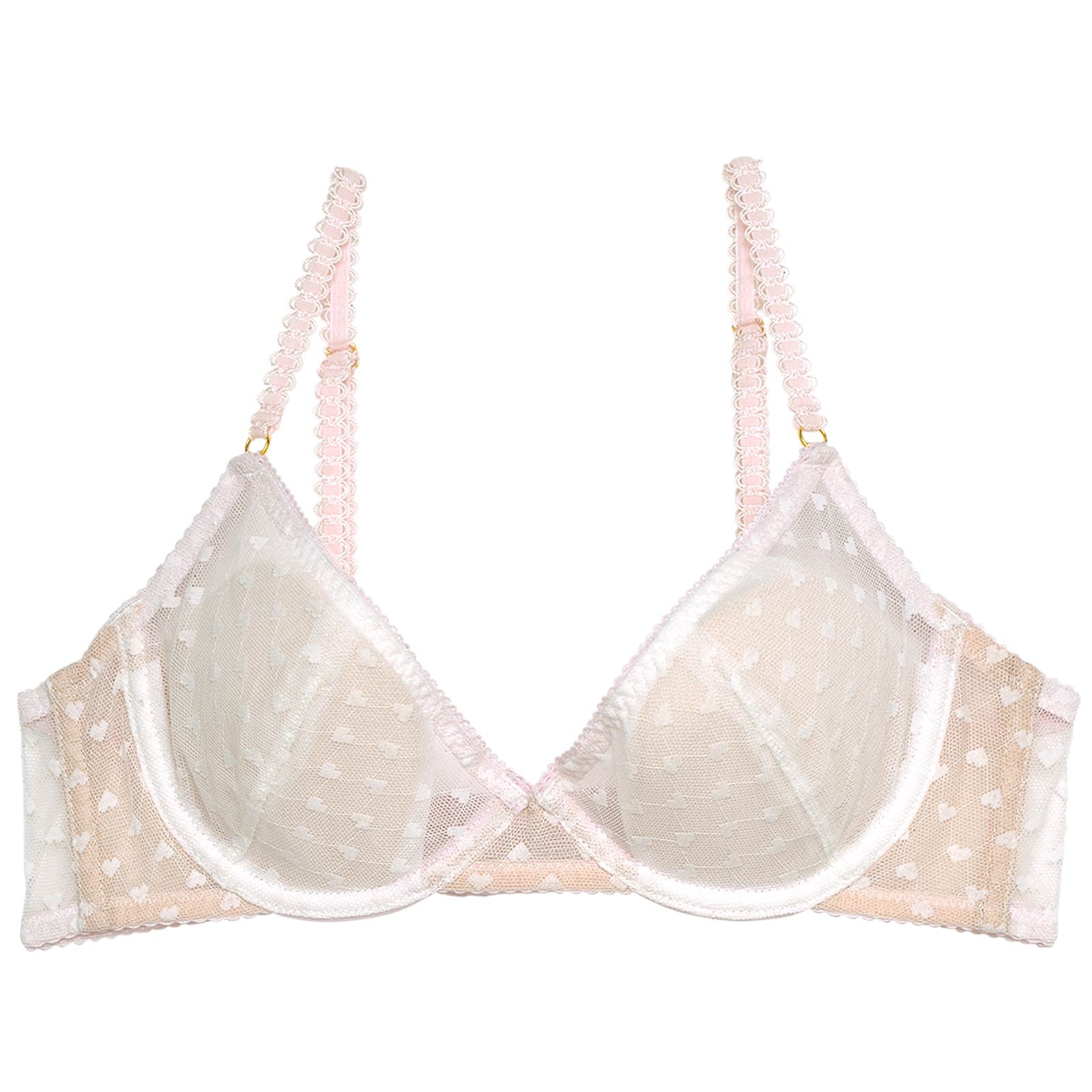 ハート柄メッシュ生地を透かしてインポートのノンパテットのようなデザイン。