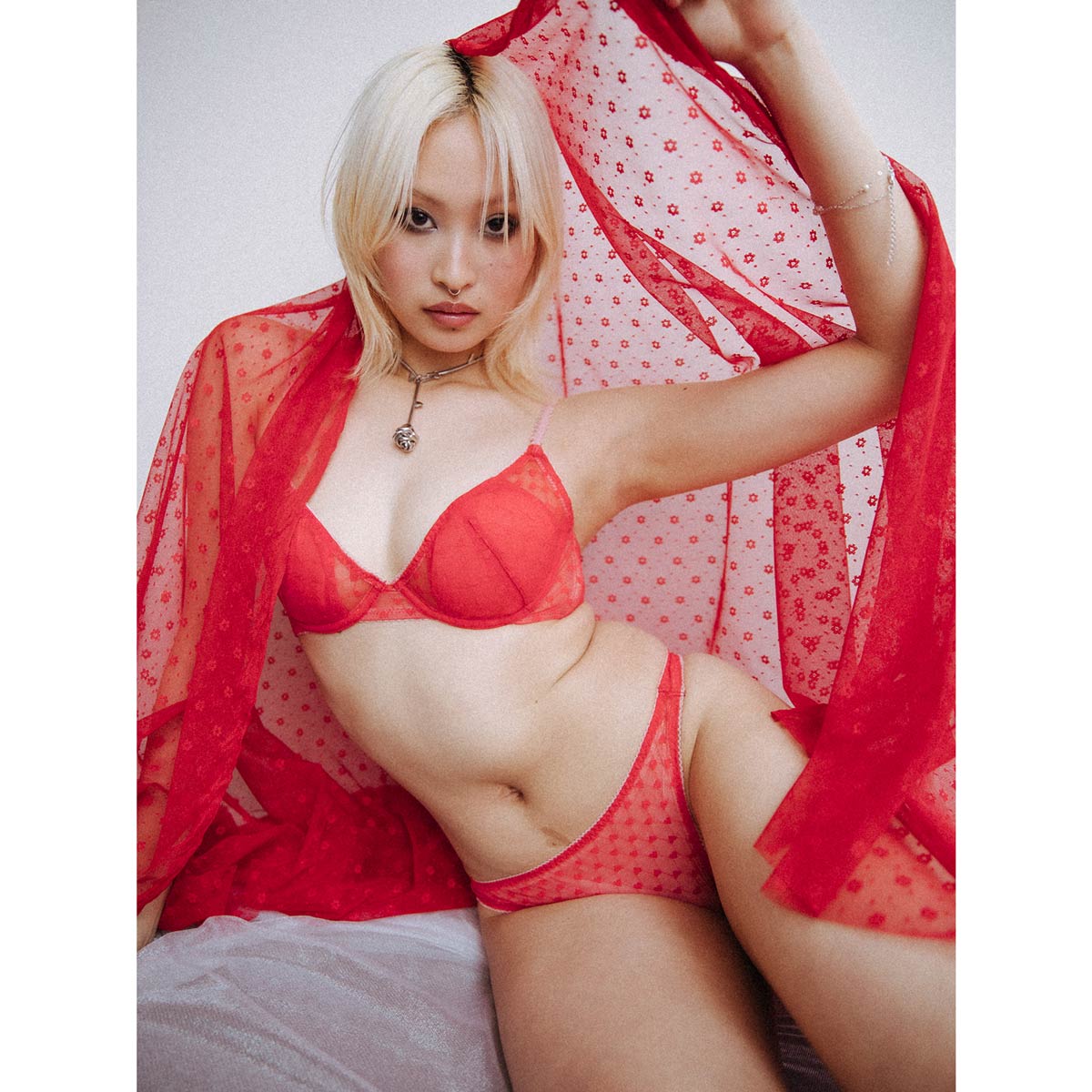 ショーツには前身にはあえて裏地をつけず透け感とセクシーさいれています。